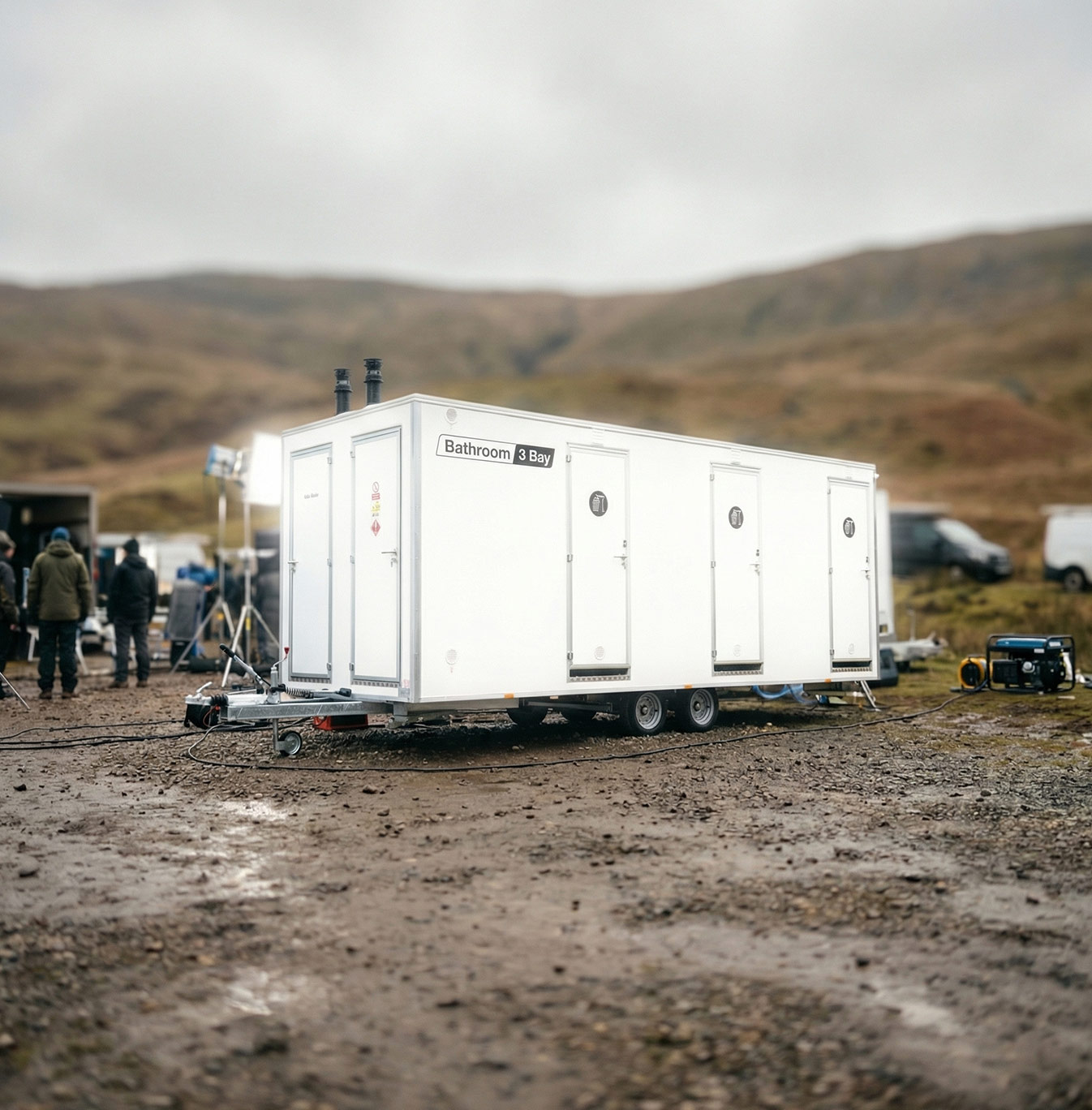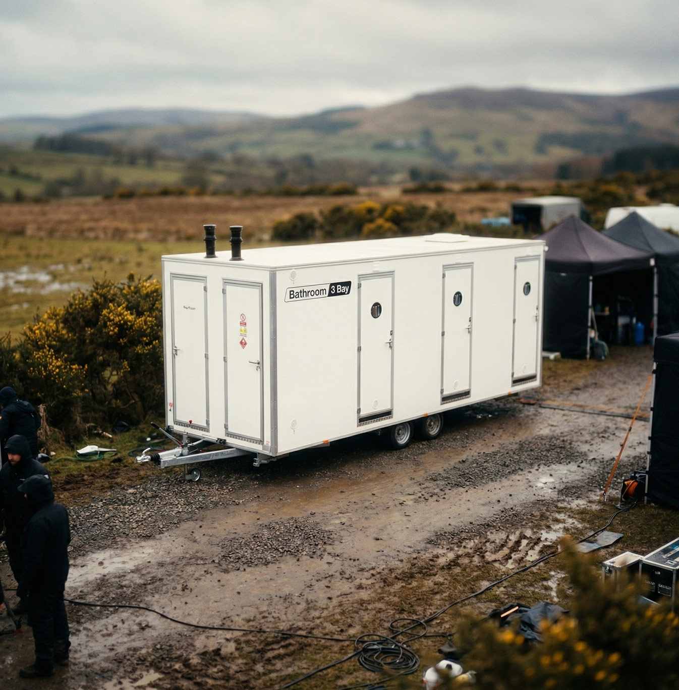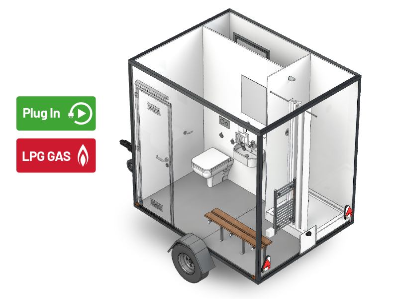 Mobile Bathroom Range, with plug-in power & water services.
