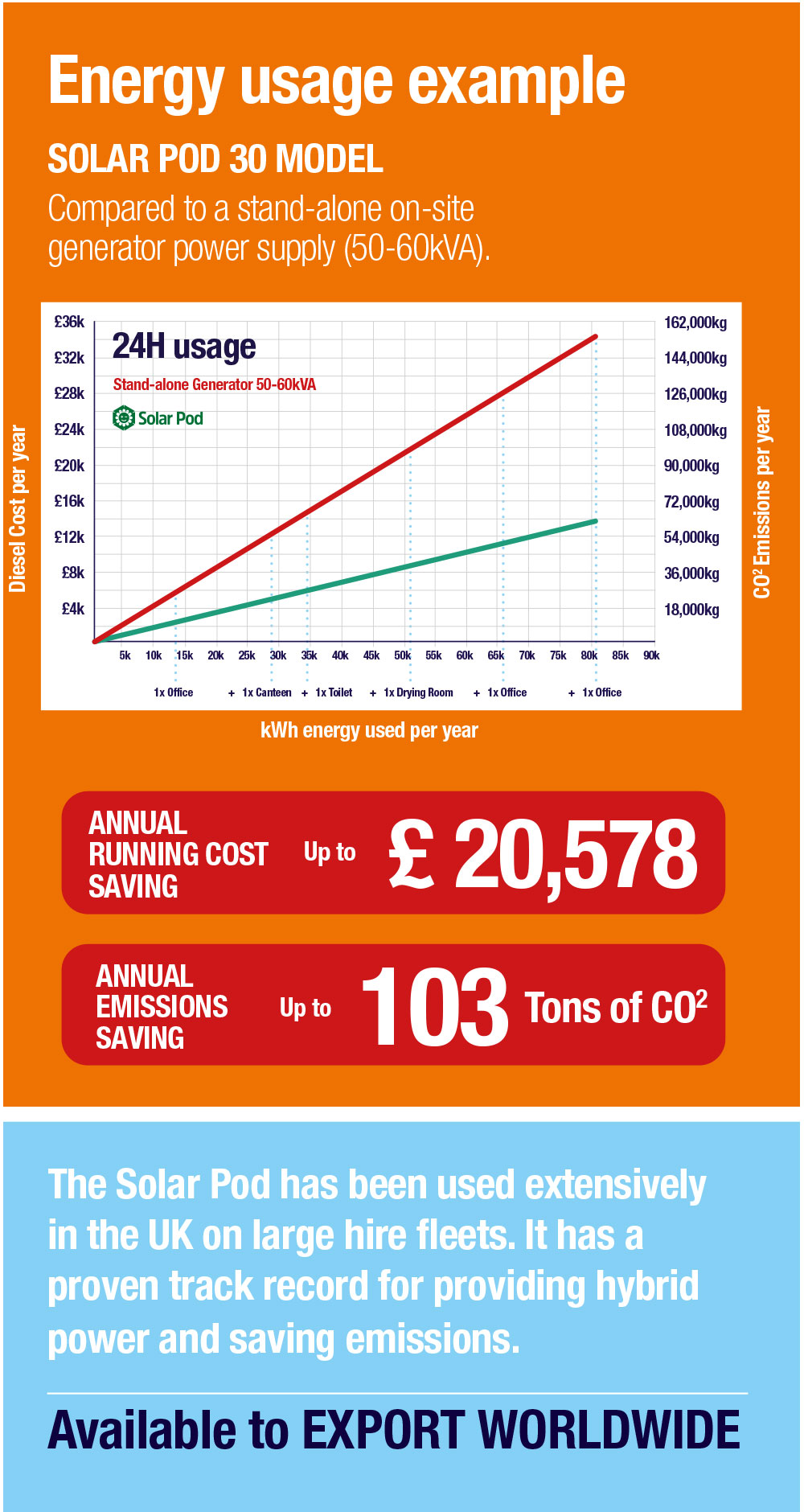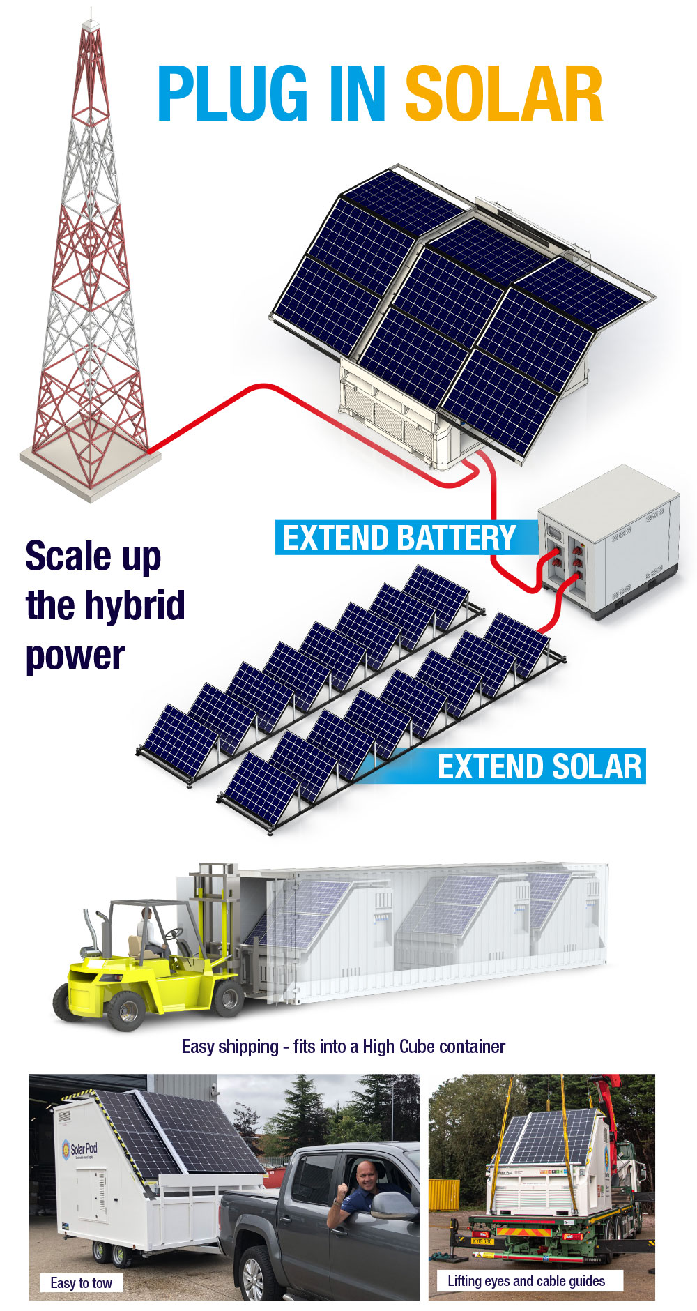 For large site BTS set ups, multiple Solar Pods can be used. Modularise the site into segments, this will optimise the performance of the Solar Pod. Add more solar capacity to your Solar Pod generator system by plugging in extra solar panels directly to the Solar Pods or using Power Pod battery storage units.