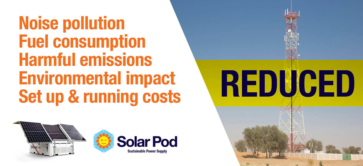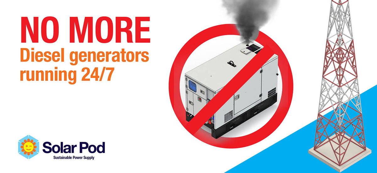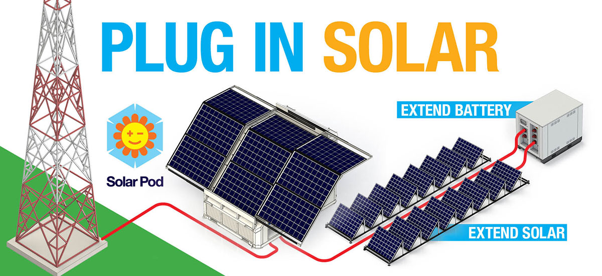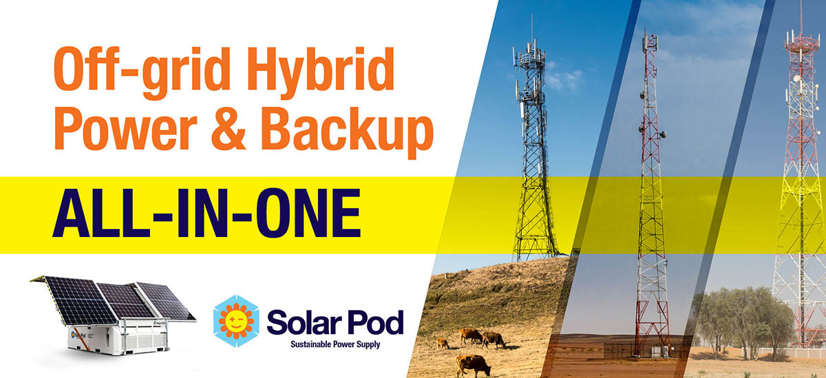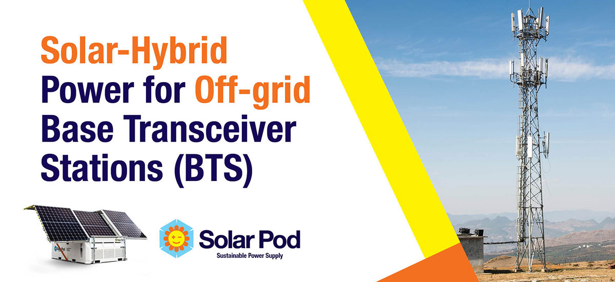 Reduce fuel use on remote off-grid cell towers (BTS), with the Solar Pod, ALL-IN-ONE-HYBRID generator.