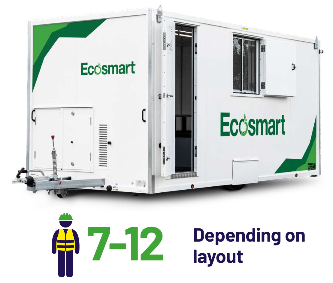 The Ecosmart 16 is our most versatile mobile welfare unit for sale, combining comfort, efficiency, and smart design in a 16ft footprint. Built for 7-12 site workers, it provides everything your team needs to rest, eat, and recharge — all in a secure, easy-to-tow welfare unit.