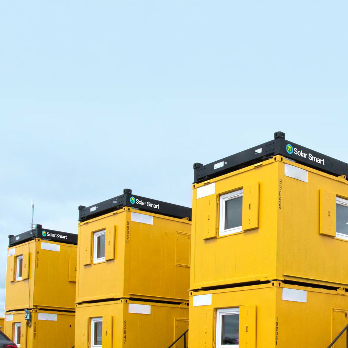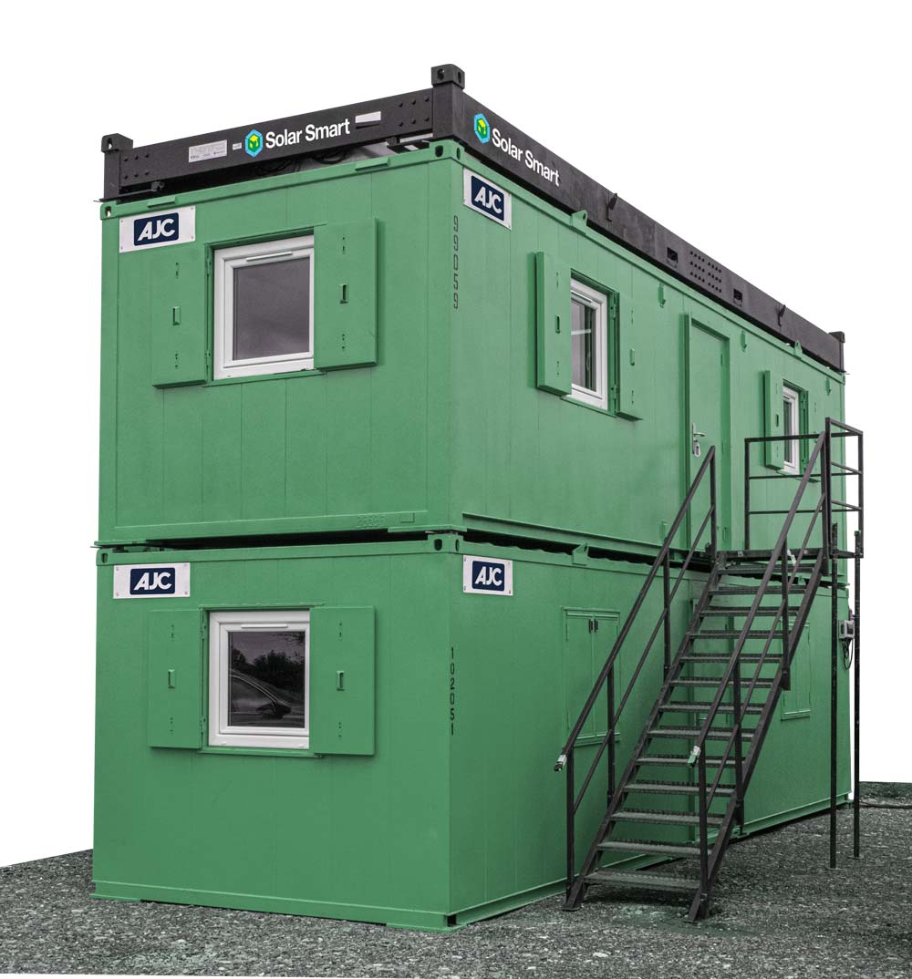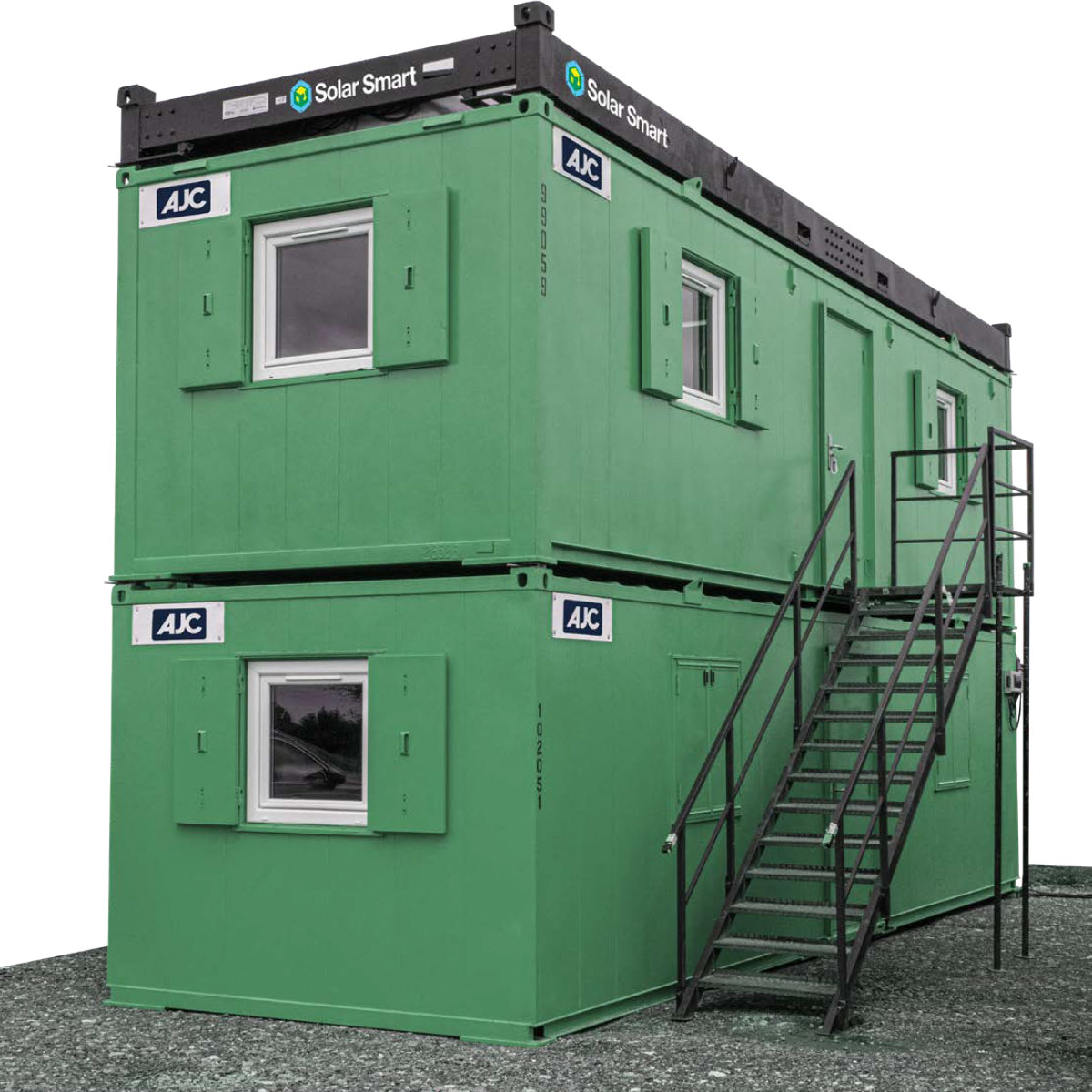 The Solar Smart Frame is engineered to make temporary accommodation, welfare units and containers significantly more eco-friendly. Available as roof-mounted or floor-standing solar frames, each unit provides up to 5kW of solar power, helping to power entire site setups when combined with other AJC Power Solutions products.