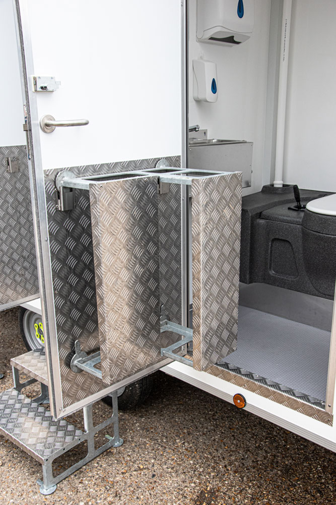 The Solar Toilet Xtra can accommodate up to 12 chemical toilets and/or urinals, depending on trailer size and layout.