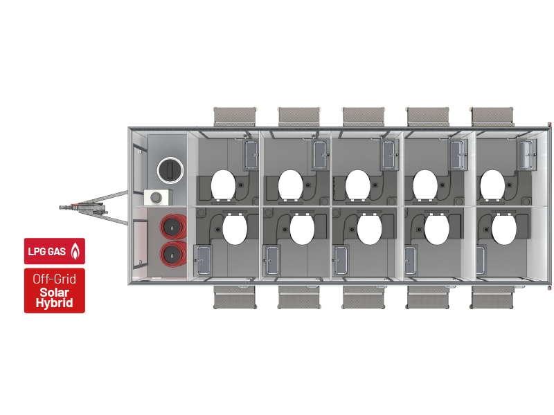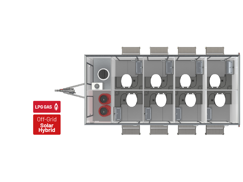 Hybrid Mobile Toilet Range, design for OFF-GRID operation.