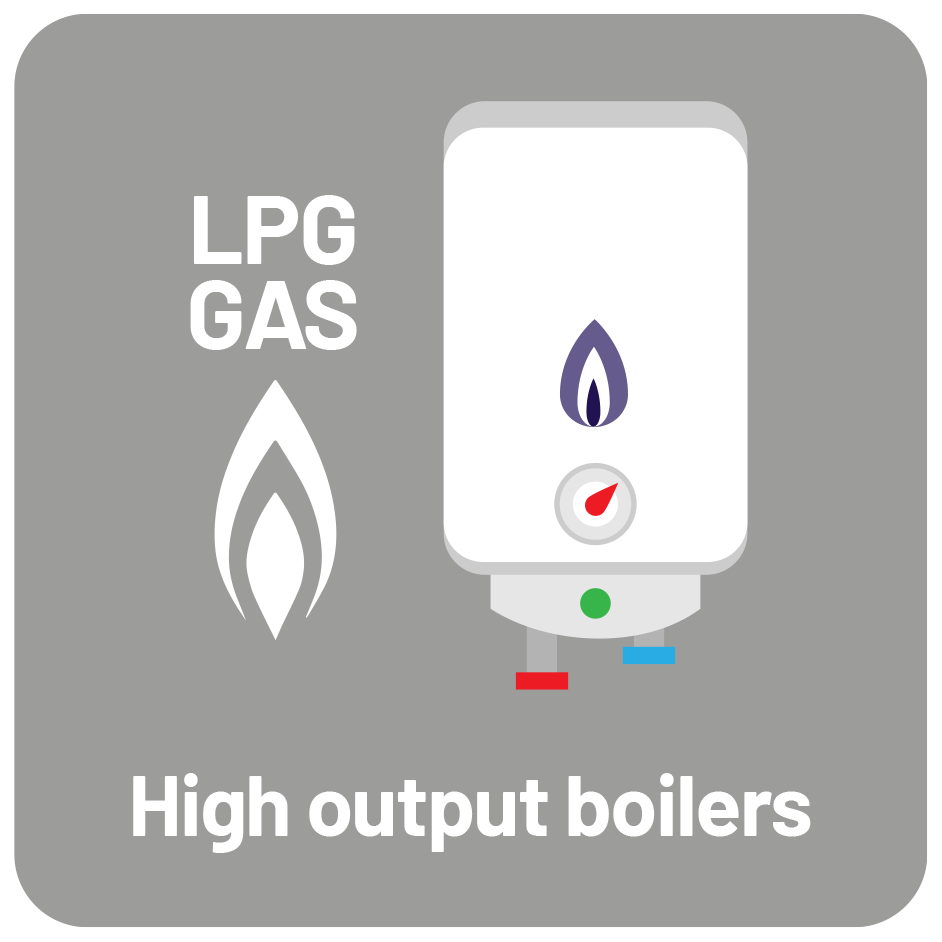 Hybrid: LPG for hot water, Battery/Solar power for water pumps, lights.