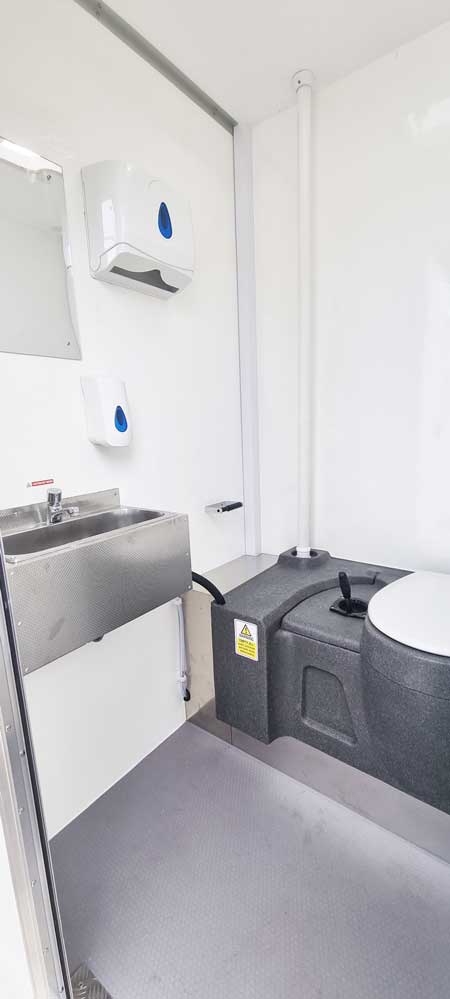 Fully independent toilet facilities, no need for electrical, waste or water hook-ups.