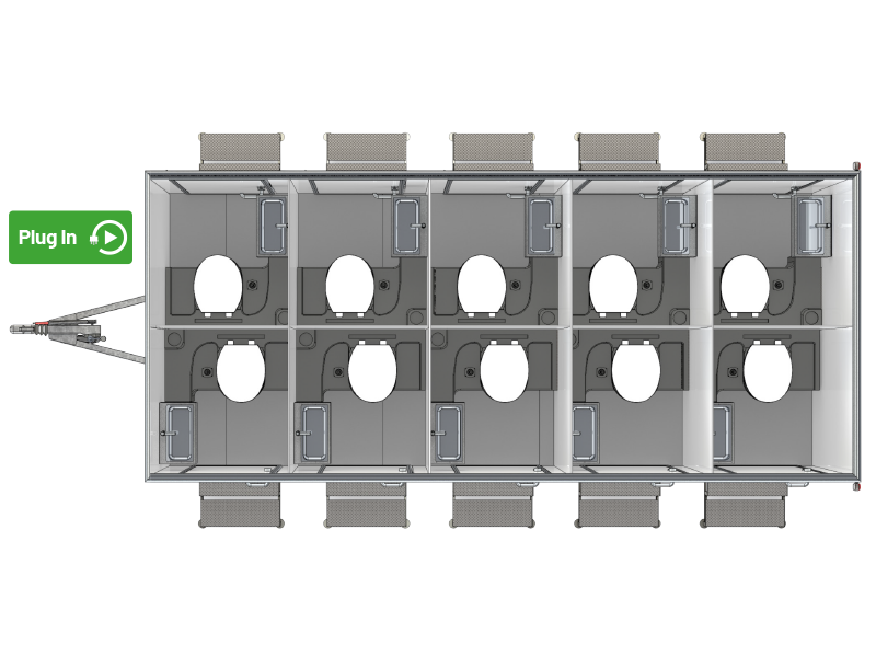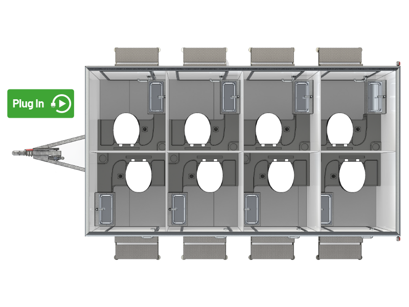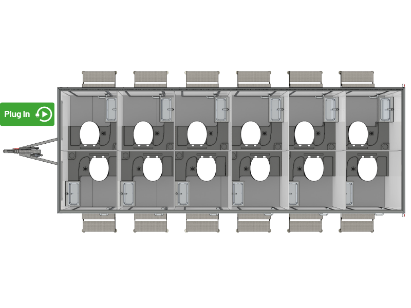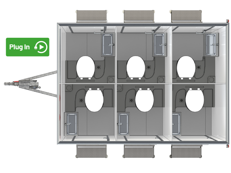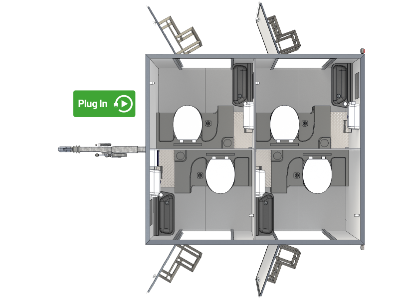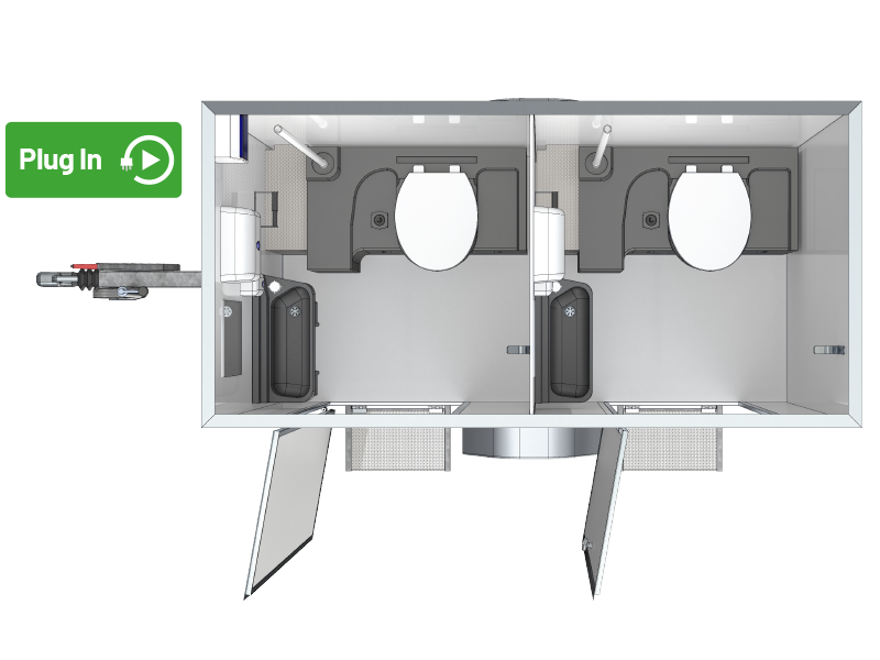 Our Toilet Range is designed to be plugged into local services to function. Incoming power hook-ups are needed to run the unit. Optional mains waste output is available for the Flush toilet upgrade.