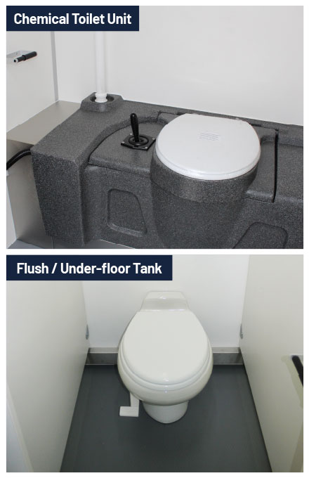 EasyCabin mobile toilet units can be specified with three toilet system options, allowing you to match the unit precisely to site infrastructure, servicing requirements and user expectations.
